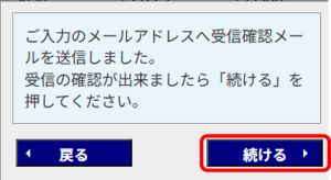 メールが届いていたら、マイページの画面に戻り[ 続ける ]をクリックして下さい。