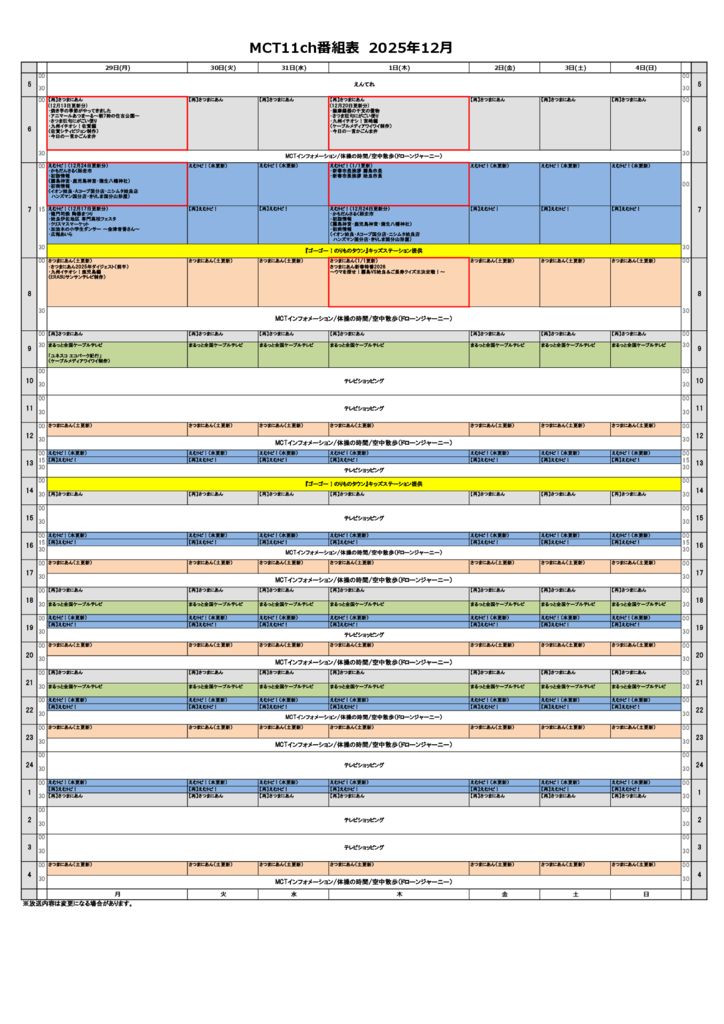 • MCT11チャンネル・12チャンネル 週間番組表