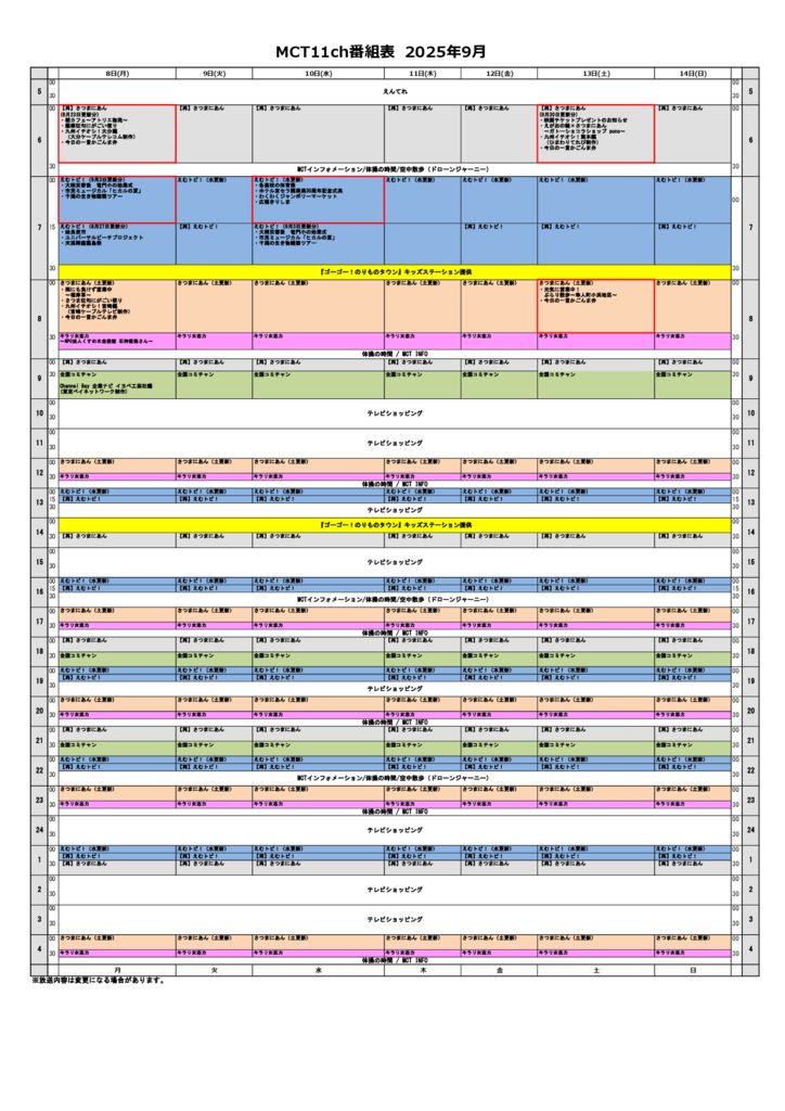• MCT11チャンネル・12チャンネル 週間番組表